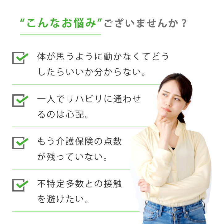 医師の同意のもと、お手持ちの健康保険が適用されますので、介護保険の点数に影響を与えずにご利用できます。